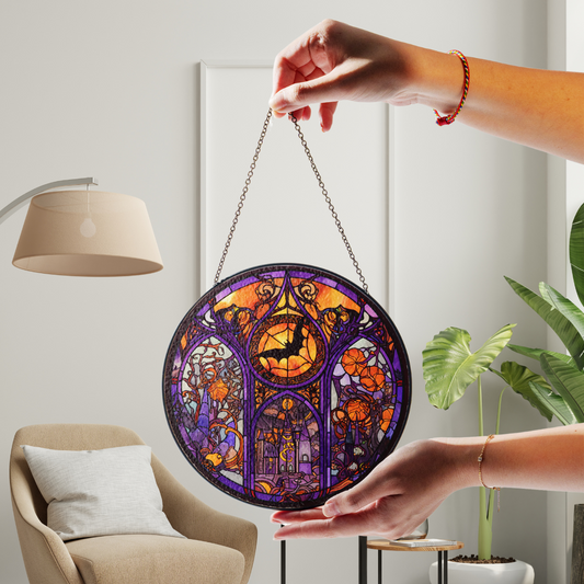 Halloween Suncatcher, Spooky Stained Glass Window Decor, Home and Party Decoration, HLW002
