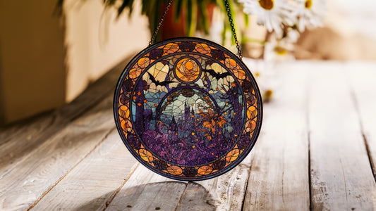 Halloween Suncatcher, Spooky Stained Glass Window Decor, Home and Party Decoration, HLW001